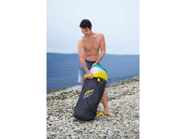 | Aufbau | Mit Handpumpe aufpumpen; nach Gebrauch über Ventil entlüften und aufrollen |
