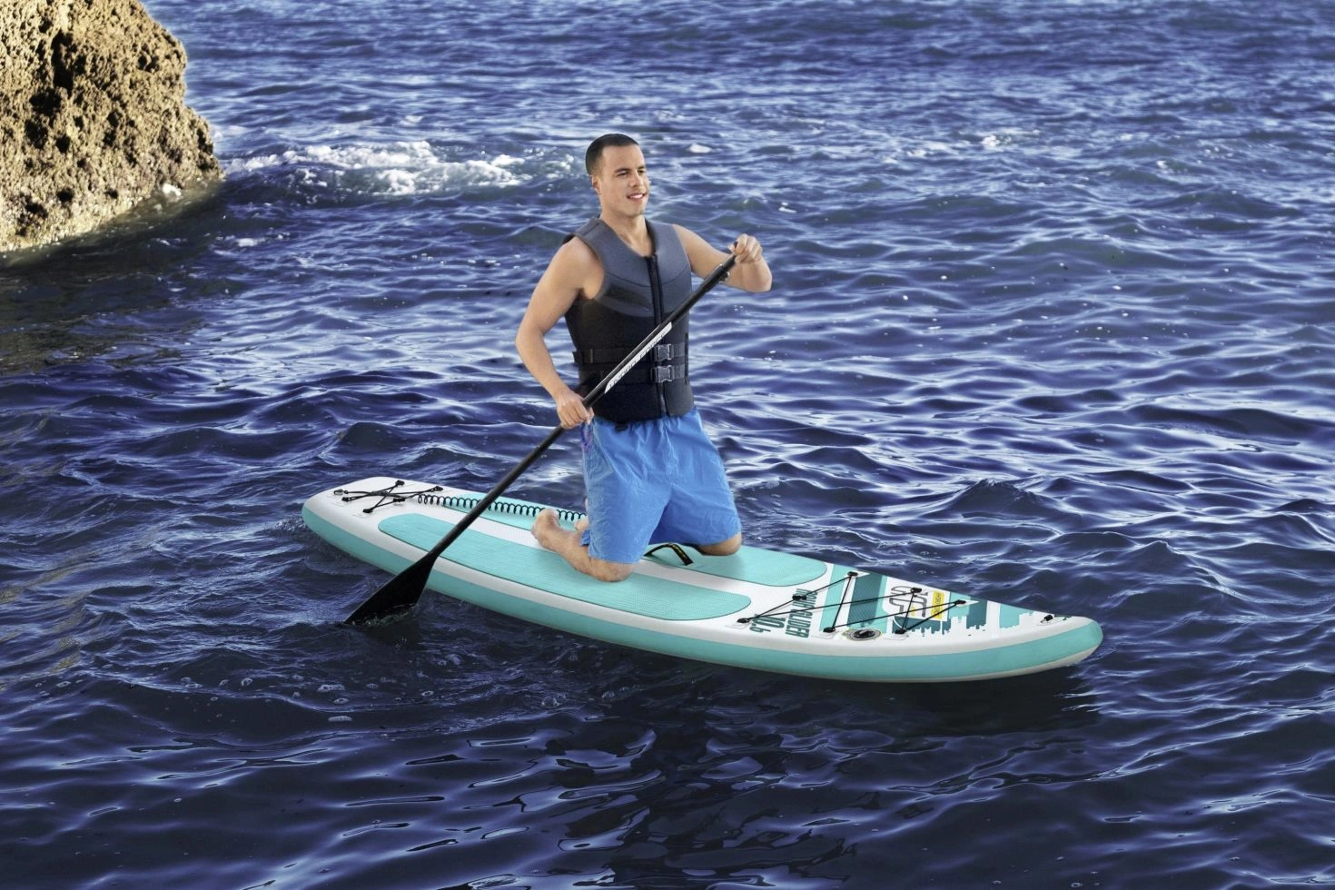 Highlights: Hohe Steifigkeit dank Dropstitch, rutschfestes Deck, spurtreu durch 2 Finnen, leicht zu transportieren, schnell aufgepumpt und platzsparend verstaut.