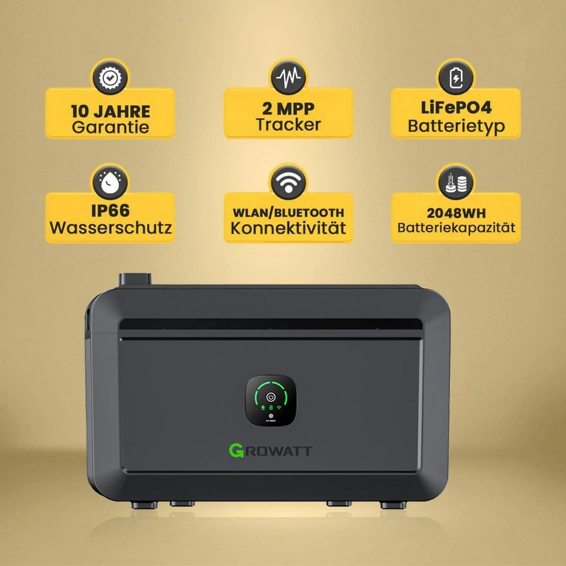 Growatt - NOAH 2000 Solarspeicher – 2048 Wh LiFePO4 Balkonkraftwerk Speicher (erweiterbar bis 8192 Wh)