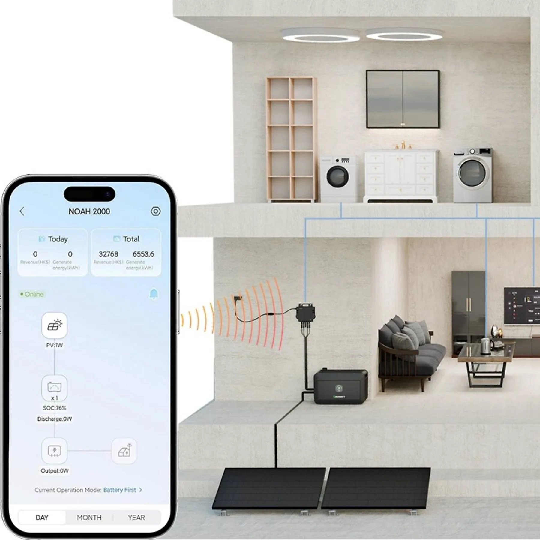 Dank patentierter Stacking-Technologie lässt sich das System ohne zusätzliche Verkabelung auf bis zu vier Module erweitern (8192 Wh). Der 800 W-DC-Ausgang (40–50 V) ist ideal für Mikrowechselrichter. Über die Growatt Smart App behältst du Leistung und Status jederzeit im Blick.